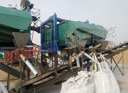 (3) 針對分級顆粒度比較接近,分級時(shí)有靜電起球且易堵網(wǎng)的物料,我公司專門設(shè)計(jì)了先篩細(xì)再篩粗的反向(反向篩分)篩分振動篩和搖擺篩,不但有效防止了堵網(wǎng),還讓篩分精度大大提高。